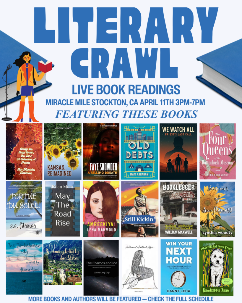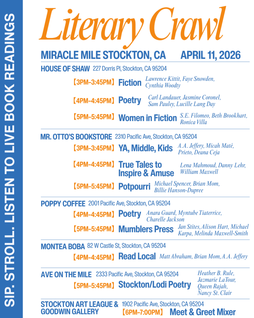 🎟️ Raffle & Giveaways Each stop earns you a raffle ticket for a chance to win book baskets filled with books, wine, and treats. Raffles will be drawn at the end of the event at the Stockton Art League Goodwin Gallery Meet & Greet Mixer. You must be present to win. 📖 A special thank you to our talented local authors for donating books. 🍫 Treats provided by A Sweet Deal, featuring delicious chocolate and taffy.