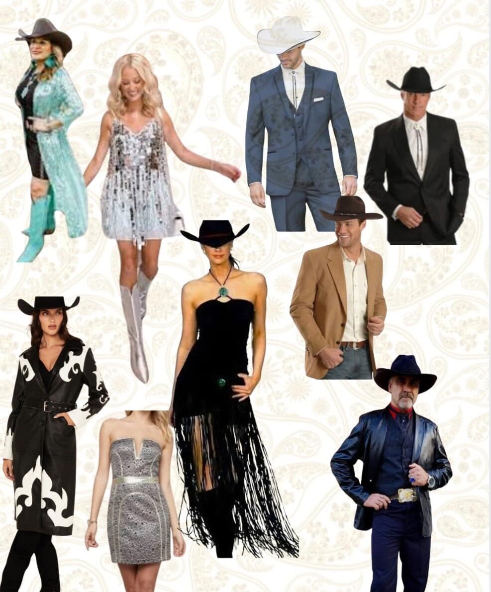 For women, flowy dresses paired with boots or heels offer a perfect blend of elegance and western charm. For men, dark denim or slacks with a clean shirt and boots creates a sharp, timeless look. Add subtle western details like a quality leather belt or understated fringe for a sophisticated nod to the theme.